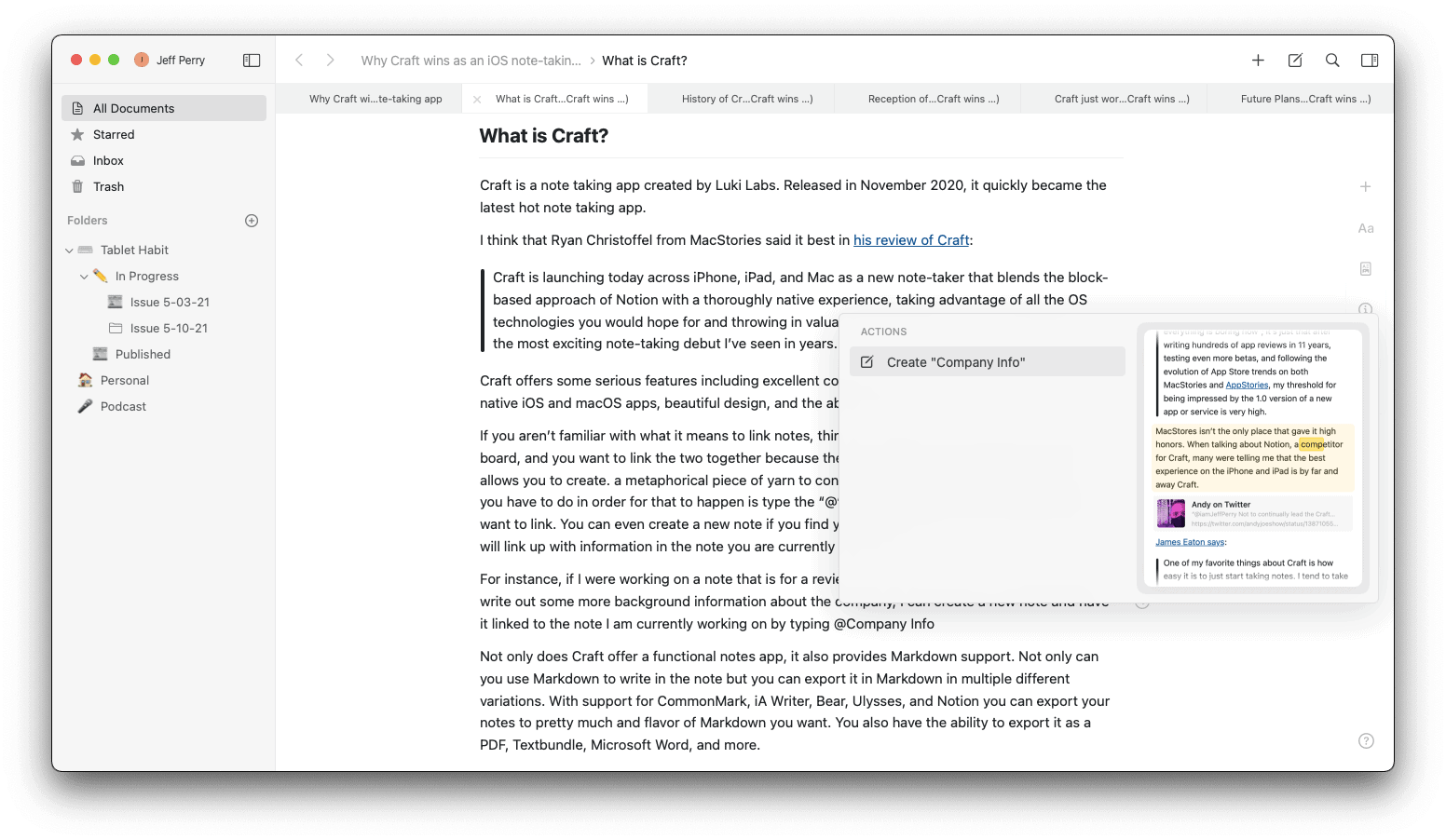 Ryan Christoffel from MacStories explained just how powerful Craft was as a 1.0 app in a way I couldn’t.